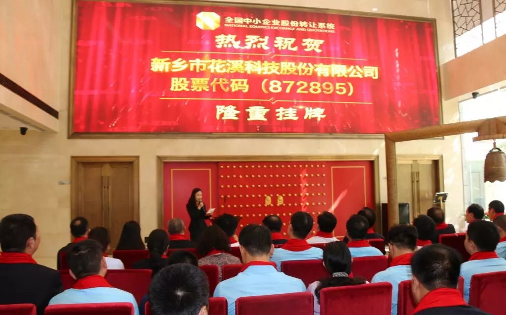 2018年8月31日上午9:30時,新鄉市花溪科技股份有限公司(簡稱:花溪科技,股票代碼:872895)新三板掛牌敲鐘儀式在北京全國中小企業股份轉讓系統成功舉行。中國農機工業協會副秘書長寧學貴、獲嘉縣人民政府縣長劉軍偉、新鄉市金融局副局長張延明等特邀嘉賓及公司股東代表、員工代表、主辦券商、律師事務所、會計師事務所代表共同出席了掛牌儀式,共同見證花溪科技這一里程碑式的重要時刻。
